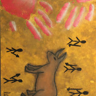 Inspiré par les oeuvres rupestres de la Préhistoire, l'élève créait un arrière-plan s'apparentant à une paroi rocheuse puis y dessinait des éléments faisant référence aux thématiques chères aux hommes des cavernes.